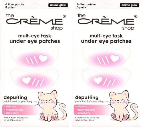 The Crème Shop Mult-Eye Task Under Eye Patches | Under Eye Patches for Puffy Eyes | Korean Skin Care | Vitamin C, Hyaluronic Acid, Strawberry – Anime Glow (3 Pack)